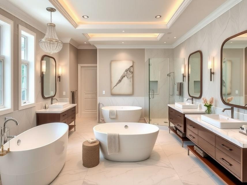 Transforming bathrooms into luxurious retreats with stylish fixtures and layouts.