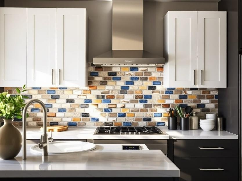 In kitchens and bathrooms, mosaic stone backsplashes can serve as focal points.